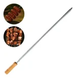 Espeto 65 cm de aço e cabo de madeira, ideal para preparar aquele churrasco com a família e os amigos.
