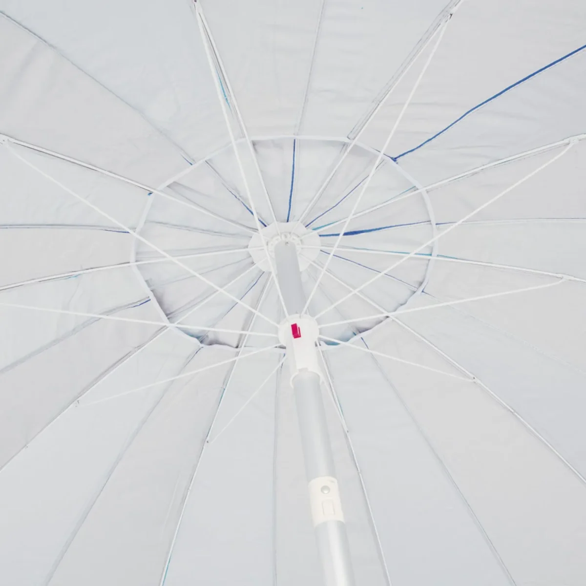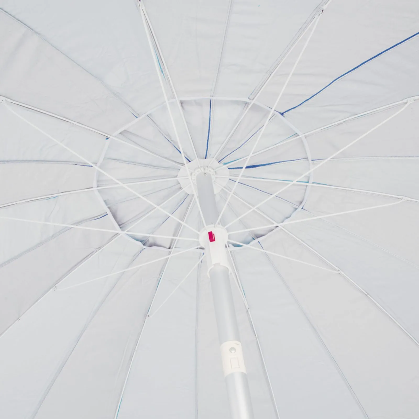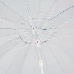 Além de ter um diâmetro de 2,20m que projeta uma ótima sombra, ele ainda é articulável, de forma que sua posição pode ser ajustada de acordo com o sol. Feito em poliéster com revestimento em silver coating, possui FPS 100.