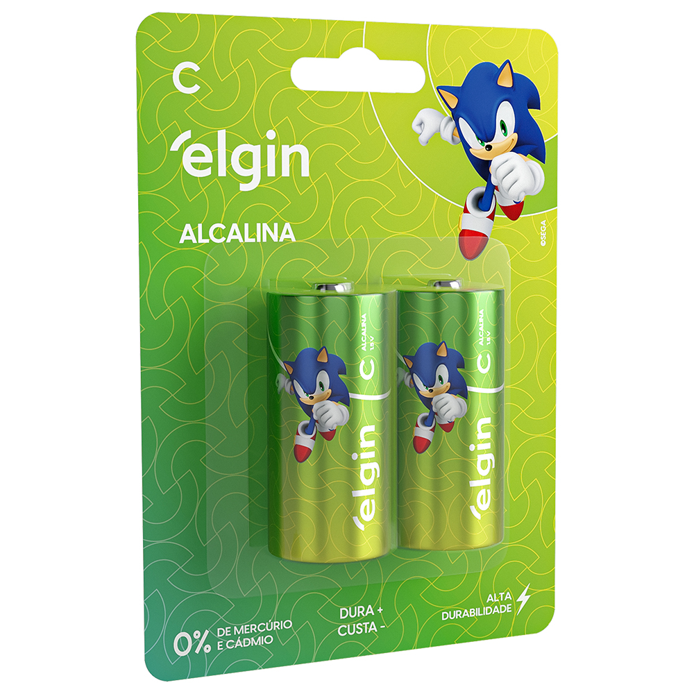 Conteúdo na embalagem: 1 pacote com duas pilhas alcalinas D Elgin